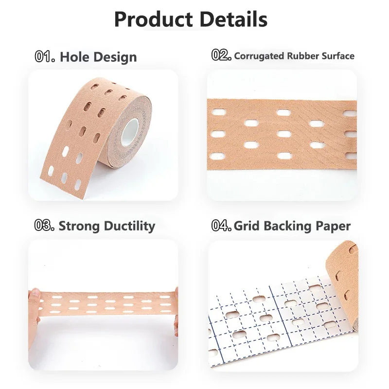 5 cm breites, perforiertes Kinesiologie-Tape aus Baumwolle unterstützt Muskeln und Gelenke effektiv. Hautfreundlich, atmungsaktiv und elastisch, bietet es optimale Bewegungsfreiheit und fördert die natürliche Heilung. Ideal für Sport und Alltag.