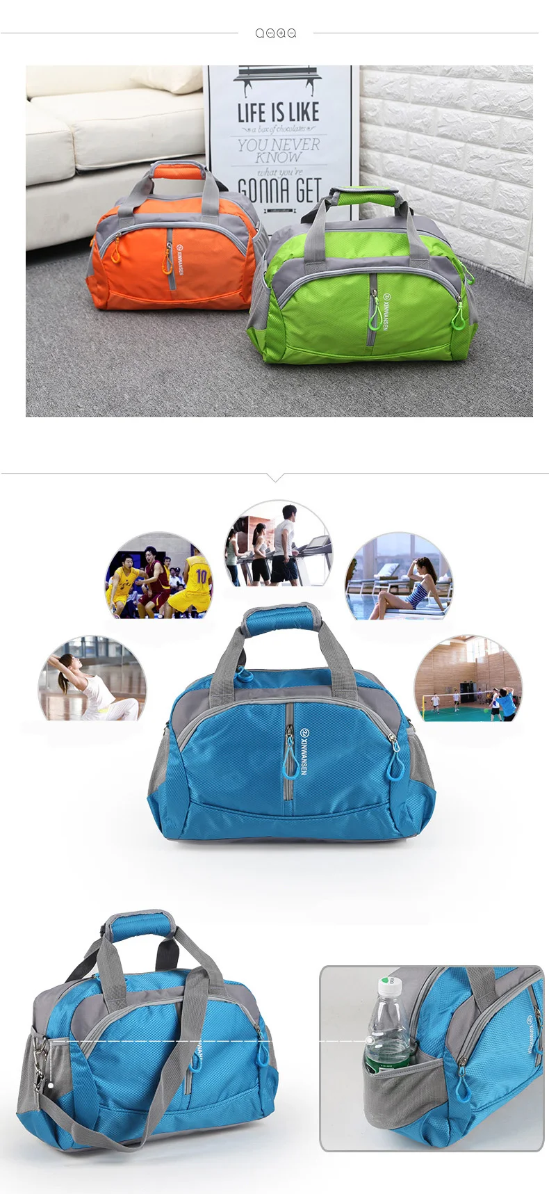 Diese professionelle Sport- und Gym-Tasche ist aus wasserdichtem Nylon gefertigt und eignet sich sowohl für Frauen als auch für Männer. Mit einer Größe von 40*20*26 cm bietet sie ausreichend Platz für Ihre Sportausrüstung. Ihre Robustheit und Wasserbeständigkeit machen sie zum idealen Begleiter für Fitnessstudio und Outdoor-Aktivitäten.