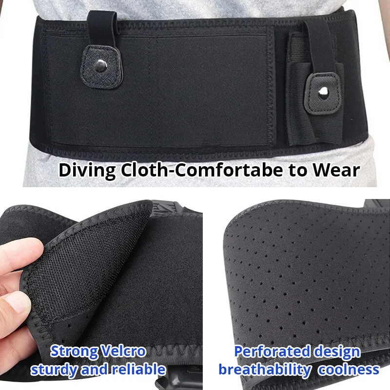 Darüber hinaus bietet unser taktischer Bauchpistolenhalter eine praktische Handyhalterung. Sie können Ihr Mobiltelefon sicher an Ihrem Körper befestigen, um es jederzeit griffbereit zu haben. Ideal für den Einsatz bei Outdoor-Aktivitäten, beim Training oder in anderen Situationen, in denen Sie Ihr Handy sicher und leicht zugänglich haben möchten.