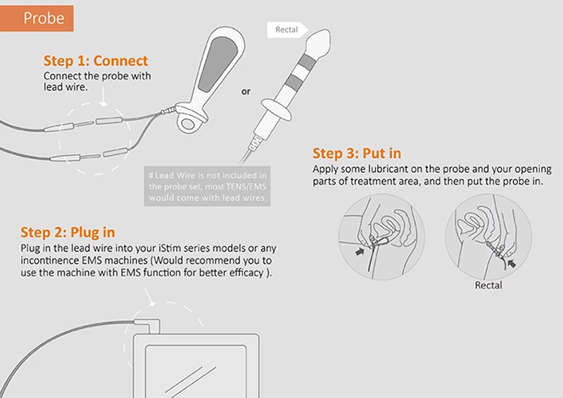 2. Diese Beckenbodenmuskelsonde wurde entwickelt, um Inkontinenzpatienten bei der Durchführung automatischer Kegel-Übungen zu unterstützen. Der im iStimEM-5200 verwendete niederfrequente Strom erhöht die Durchblutung der Muskeln, verbessert die Widerstandsfähigkeit gegen Ermüdung und reduziert die unwillkürliche Kontraktion der Blase.
